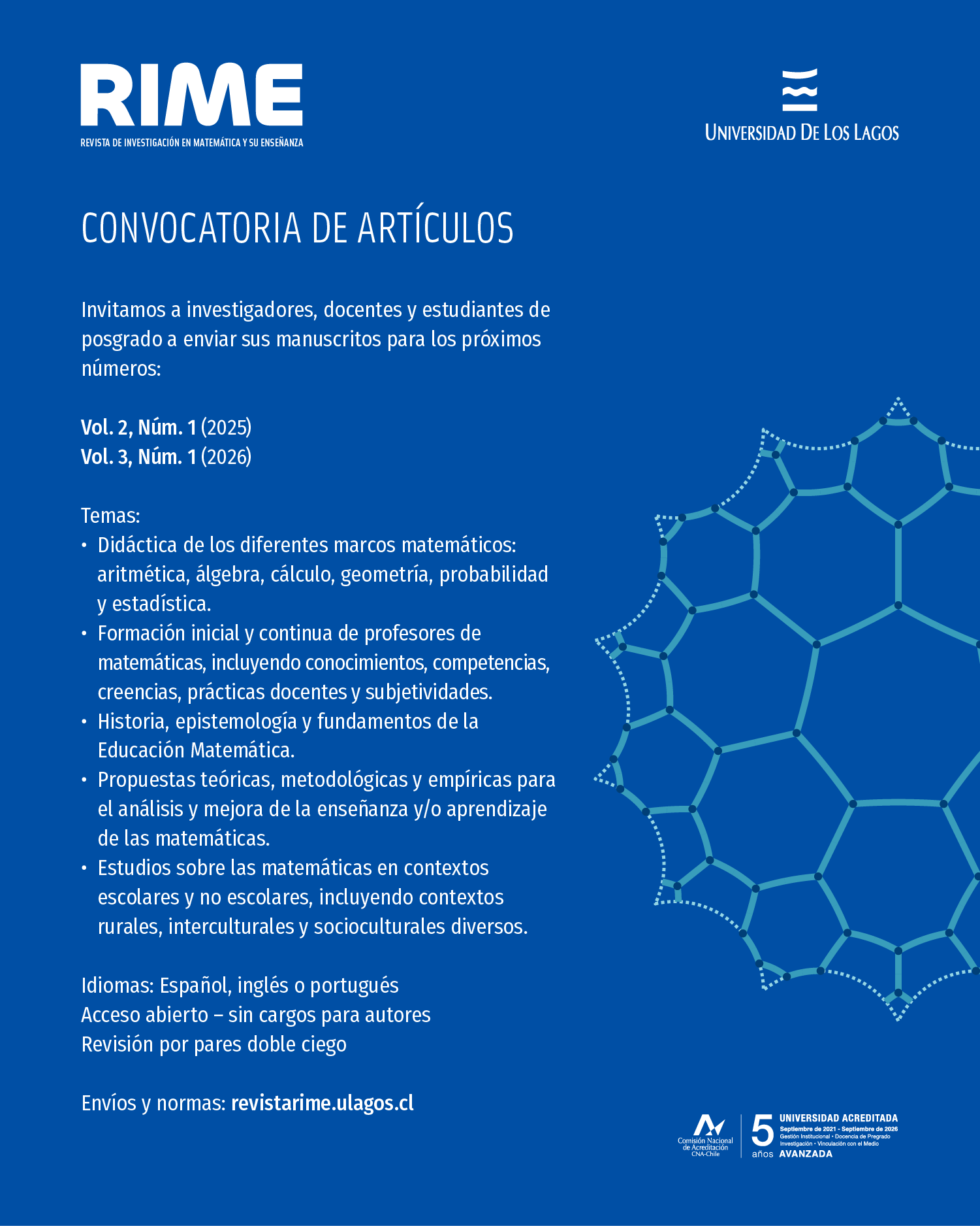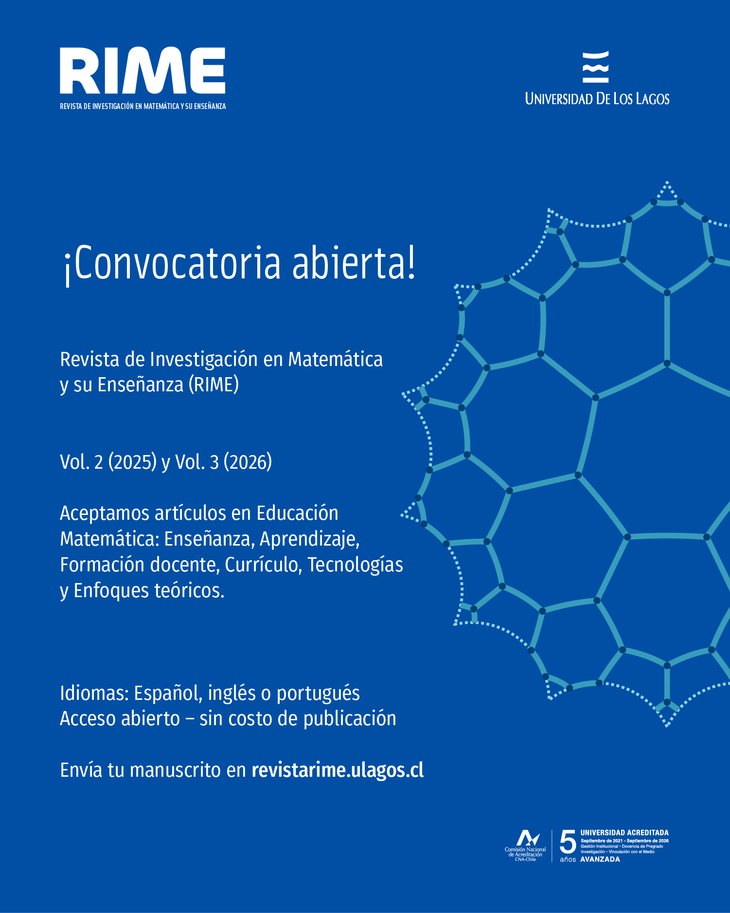 La Revista de Investigación en Matemática y su Enseñanza (RIME), editada por la Universidad de Los Lagos, invita a investigadores, docentes y estudiantes de posgrado a enviar sus manuscritos para los próximos números: