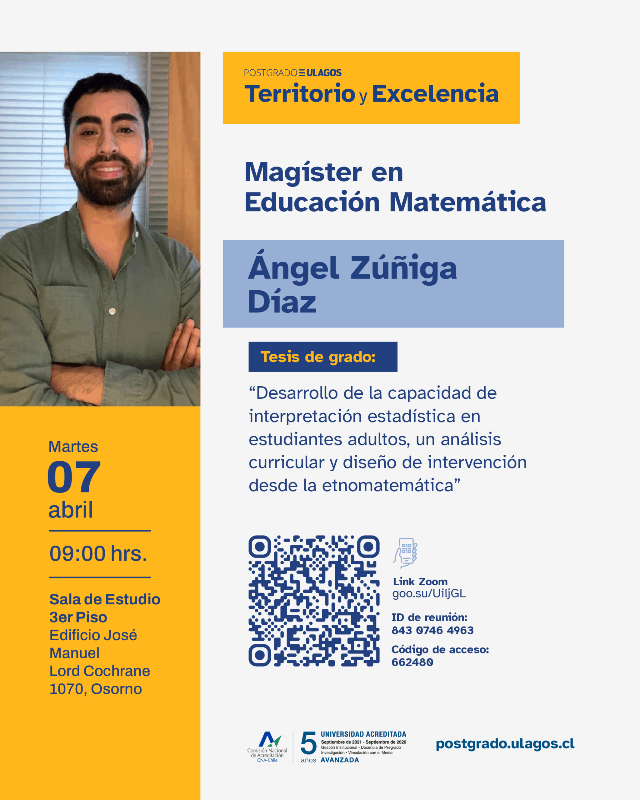 El programa de Magíster en Educación Matemática de la Universidad de Los Lagos invita a la comunidad académica a la defensa de tesis del estudiante: