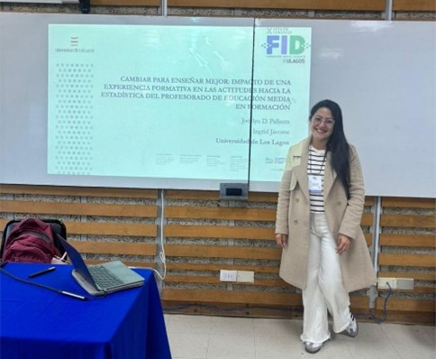 Por un lado, Ingrid Jácome, estudiante del doctorado, presentó la ponencia “Cambiar para enseñar mejor: impacto de una experiencia formativa en las actitudes hacia la estadística del profesorado en formación de educación media”, en la línea temática Reflexión sobre la práctica educativa.