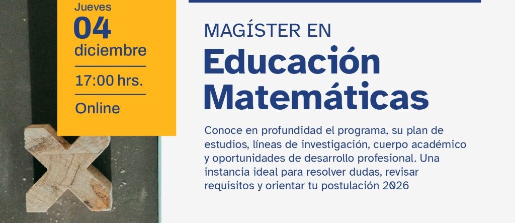 El Programa de Magíster en Educación Matemáticas de la Universidad de Los Lagos invita a docentes, profesionales del área y personas interesadas a participar en su Webinar Informativo de Admisión 2026, una instancia diseñada para conocer en profundidad: